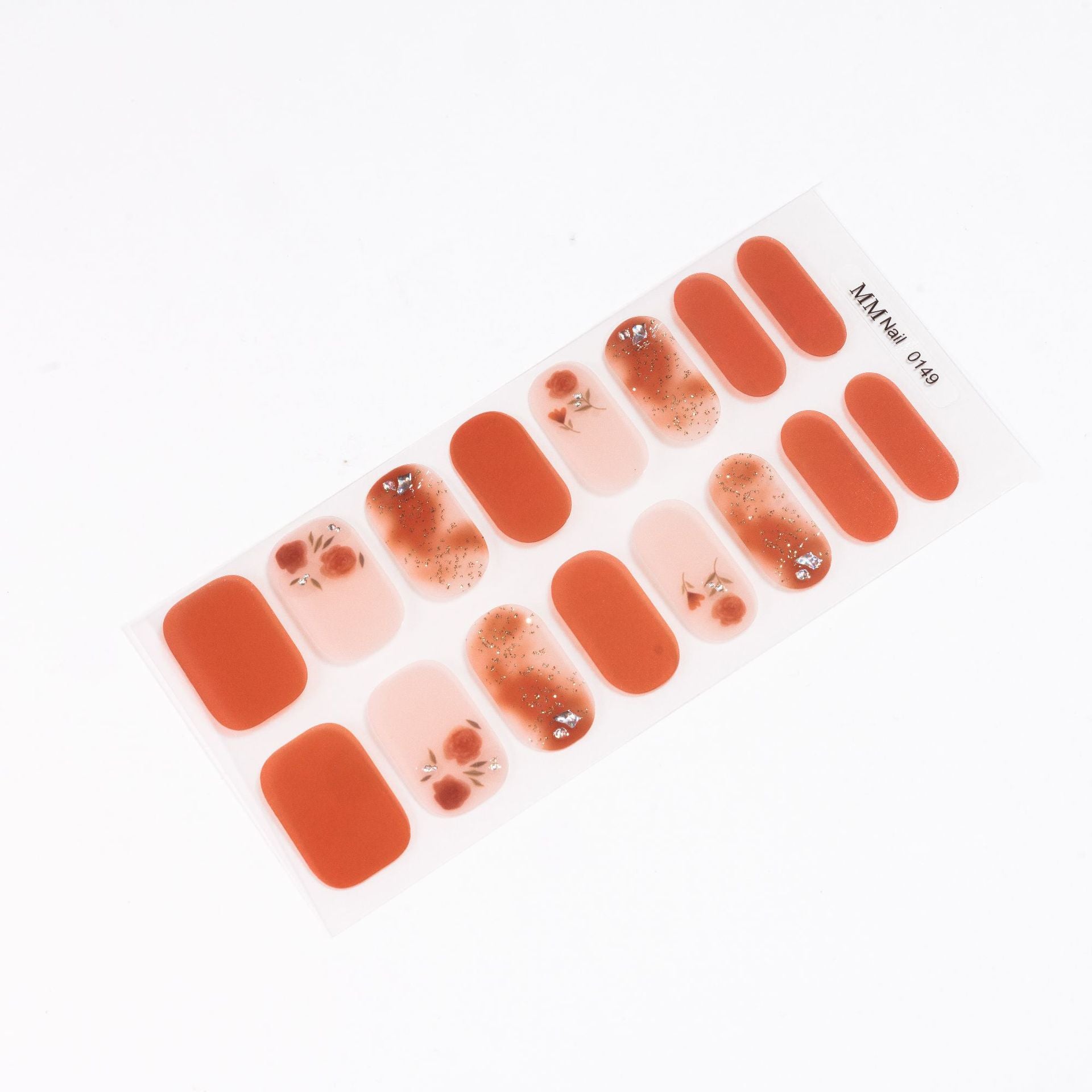 These nail stickers feature lovely coral tones, soft pinks, delicate flower designs, and glittery accents. They’re super easy to apply, so you can get a pretty, polished manicure in minutes—perfect for adding a warm, feminine touch to your look!