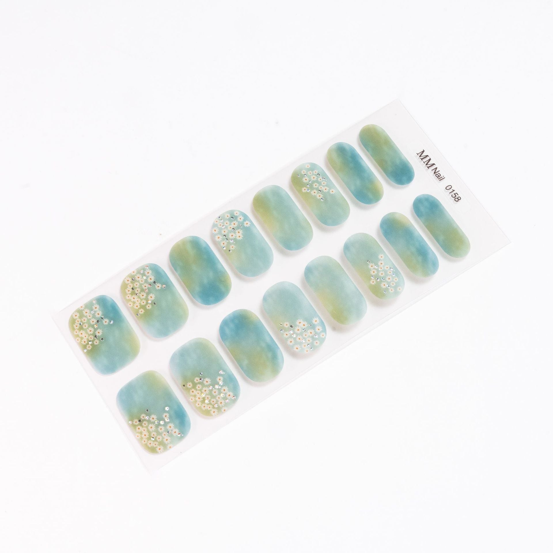 These nail stickers feature soft blue-green gradients paired with tiny daisy flowers and glittery accents. They’re super easy to apply, so you can create a fresh, nature-inspired manicure in minutes. Perfect for adding a whimsical, garden-like touch to your nails!